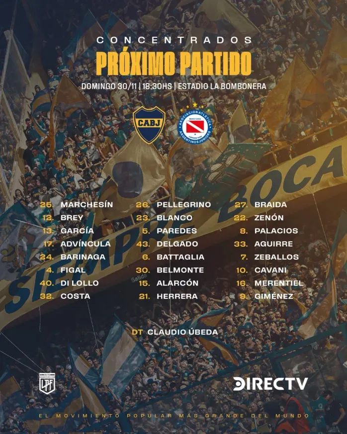 Boca ya tiene la lista de concentrados definida para recibir a Argentinos Juniors este domingo a las 18.30 en La Bombonera. Claudio Úbeda apuesta a los mismos nombres que viene utilizando y con los que entrena habitualmente.