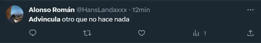 La respuesta del peruano fue floja ante el ataque argentino, que llegó por su sector en el lateral derecho. Si bien hubo quienes lo criticaron y cuestionaron, teniendo en cuenta que tendrá que regresar a Boca para afrontar los partidos más importantes de su vida, aparecieron diferentes fanáticos que lo justificaron al indicar que Jorge Almirón ya no lo utiliza como lateral por la derecha.