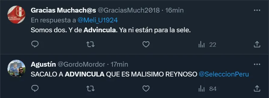 Así como se encargaron de destrozar a Advíncula por su actuación, además de los hinchas de Boca que se lamentaron pensando en lo que será el choque contra Fluminense, aparecieron varios fanáticos de la Selección de Perú cuestionando el nivel del nacido en la ciudad de Chincha, algo que también hicieron con Reynoso, el DT del elenco incaico.