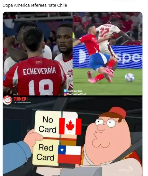En las redes sociales, los usuarios hicieron eco de este encuentro de la Roja, y allí compartieron diferentes memes, relacionados tanto a la eliminación temprana de los dirigidos por Gareca, como también por una jugada polémica en la que el VAR omitió una expulsión a un jugador canadiense.