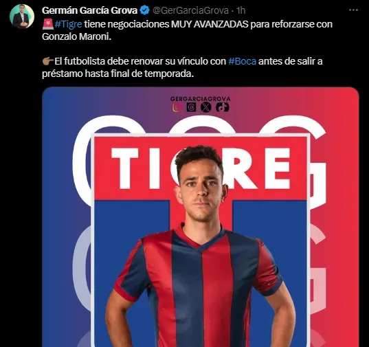 Gonzalo Maroni, cerca de unirse a Tigre