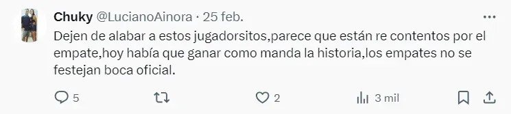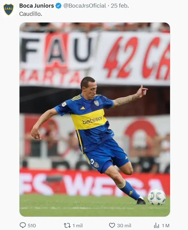 La cuenta oficial de Twitter de Boca compartió algunas fotos del Superclásico del pasado domingo que terminó 1 a 1 y una de las imágenes tenía como protagonista a Cristian Lema. La foto estuvo acompañada de un nuevo apodo: “Caudillo”. El mismo no fue bien recibido por los hinchas, que en los comentarios se manifestaron mayoritariamente en contra del apodo y pidieron calma.