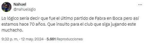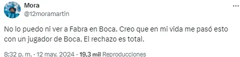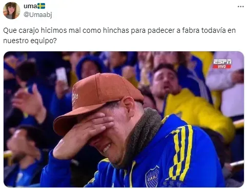 Otro se cuestionó: “¿Que hicimos mal como hinchas para padecer a Fabra todavía en nuestro equipo?“. En la mima línea, un tercero apuntó: “No lo puedo ni ver a Fabra en Boca. Creo que en mi vida me pasó esto con un jugador de Boca. El rechazo es total“.