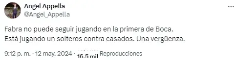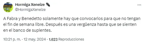 En redes sociales apuntaron contra el futbolista más antiguo del plantel, que incluso salió del campo a los 8 minutos del complemento. “Fabra no puede seguir jugando en la primera de Boca. Está jugando un solteros contra casados. Una vergüenza“, disparó uno de los hinchas.