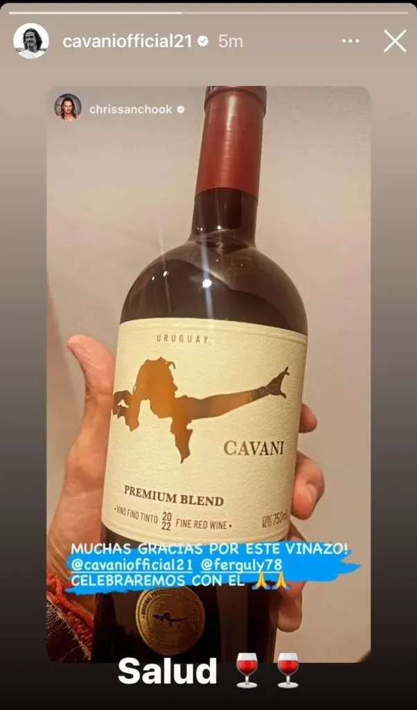 Ya en confianza, Edi le regaló a Sancho un vino de su nueva marca ‘Cavani Wines‘. Como devolución de gentilezas, Christian pronto le hará llegar un presente al crack de Boca: “Es riquísimo el vino de Edinson, tuvo la generosidad de hacerme ese regalo. Yo quedé en mandarle uno de mis perfumes, que voy a estar lanzando para el Día del Padre”.