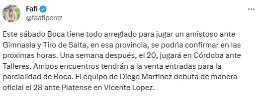 Según pudo confirmar el periodista Fafi Pérez, la hinchada de Boca contará con una importante cantidad de tickets para presenciar el debut de Diego Martínez como DT. “Ambos encuentros tendrán a la venta entradas para la parcialidad de Boca”, dijo el cronista de DSports Radio sumando el amistoso contra Talleres.