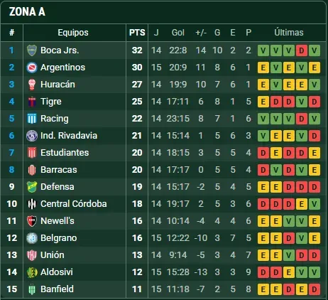 Es el líder de la zona A y está en lo más alto de la tabla anual producto de 10 victorias, 2 empates y 2 derrotas. Ganar el título resolvería muchísimas cosas. La principal: estar en la fase de grupos de la próxima Copa Libertadores.