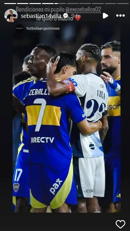 Lejos del trato que le dio la hinchada al colombiano, sus ex compañeros mostraron camaradería y lo recibieron con saludos cálidos y abrazos dentro de la cancha. Una vez que finalizó el partido, Villa estuvo activo en redes sociales y retrató su reencuentro con el Mundo Boca. Entre las múltiples fotos que subió a sus historias, hubo una en la que se vio un sentido gesto con Exequiel Zeballos.