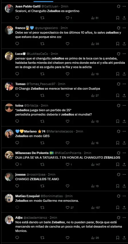 “Scaloni, Zeballos es argentino“, “Zeballos en modo Guillermo“, “Titular indiscutido“, fueron algunos de los comentarios que recibió el Chango por su gran Superclásico.