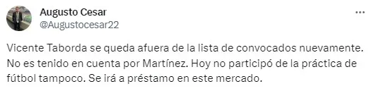 Teniendo en cuenta el compromiso ante el conjunto juninense, serán dos los duelos oficiales de este 2024 y el ex Platense no integró la nómina en ninguno de estos partidos. El periodista Augusto César ahondó en el tema y dio a conocer más detalles de la situación del futbolista: “No es tenido en cuenta por Martínez y hoy no participó de la práctica de fútbol tampoco”, reveló.