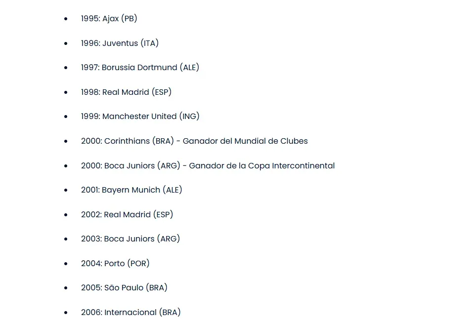 La lista generó gran confusión, sobre todo al leer uno de los párrafos del artículo en el que sí señalaban como campeones del mundo a los ganadores de aquellos años: “En octubre de 2017, el Consejo de la FIFA aprobó una moción por la cual se reconoció campeones del mundo de clubes a todos los equipos europeos y sudamericanos que habían ganado la Copa Intercontinental, disputada entre 1960 y 2004”.