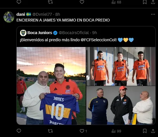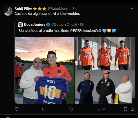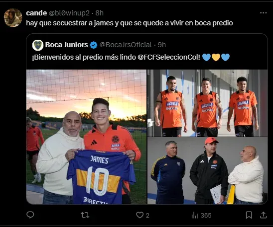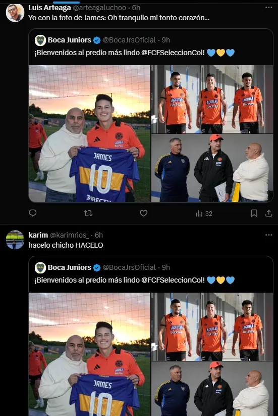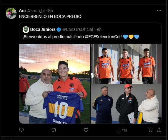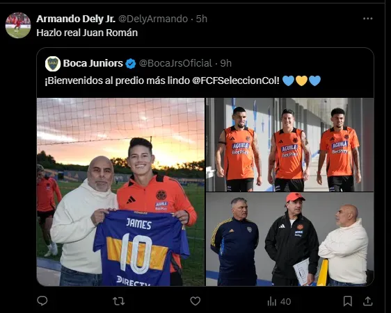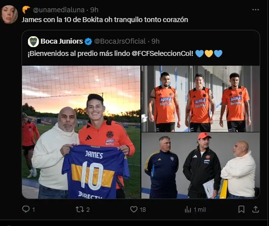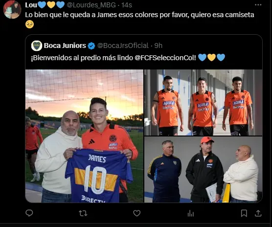 La imagen despertó una tremenda ilusión y un pedido que no estaba en los planes. “Por favor, que se quede en le Predio”. “James con la 10 de Boca, tan solo un sueño”. “Hazlo, Juan Román”.