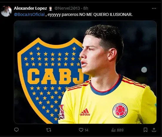 Antes de la Copa América de Estados Unidos 2024, tanto en Colombia como en Argentina se hacían eco de un arcercamiento del volante ofensivo al Xeneize. Pero él se encargó de cortarlo antes de la competencia. En diálogo con ESPN, James descartó la chance de ser refuerzo: dijo no haber intercambiado palabras con Juan Román Riquelme ni nadie del Xeneize. Y marcó:“No es parte de mi proyecto, falta mucho para eso. Quiero jugar la Copa América, vivir el día a día acá y ya después pensar”.