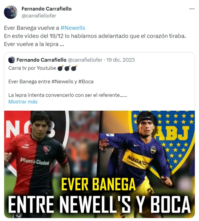 La única información que circula es que todavía no hay nada arreglado ni con Boca ni con Newell’s, por lo tanto resta esperar la voluntad del mediocampista que supo jugar en el Atlético Madrid, Valencia y Sevilla.