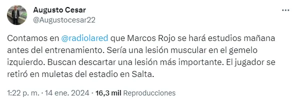 La lesión que tendría Rojo
