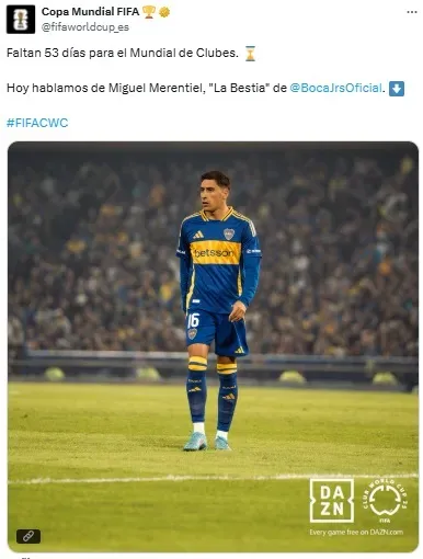 22/04/2025 La publicación del Mundial de Clubes elogiando a una figura de Boca a cinco días del Superclásico