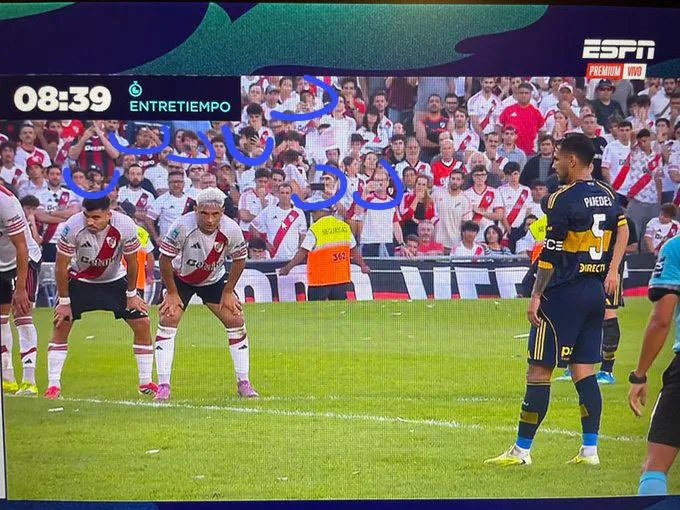 Sobre el final del primer tiempo, Herrera sancionó penal por una mano de Rivero en el área y Paredes se encargó de transformarlo en gol para sellar el 1-0 en el Monumental. La jugada generó polémica y distintas opiniones en el lado local. Mientras algunos simpatizantes de River expresaron su bronca por el fallo, otros apuntaron directamente a la reacción de los propios hinchas.