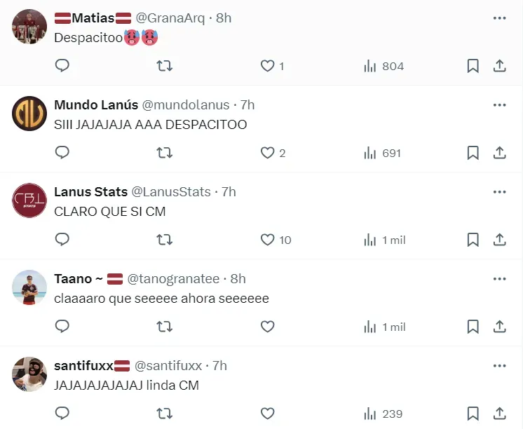 Una vez finalizado el partido, en la cuenta oficial del club de Twitter, compartieron postales del encuentro y le agregaron: “Bueno ahí lo mandamos gracias”, el clásico meme que se generó a partir del audio de una señora que decía eso y luego emitía una especie de gemido y agregaba: “Despacito”.