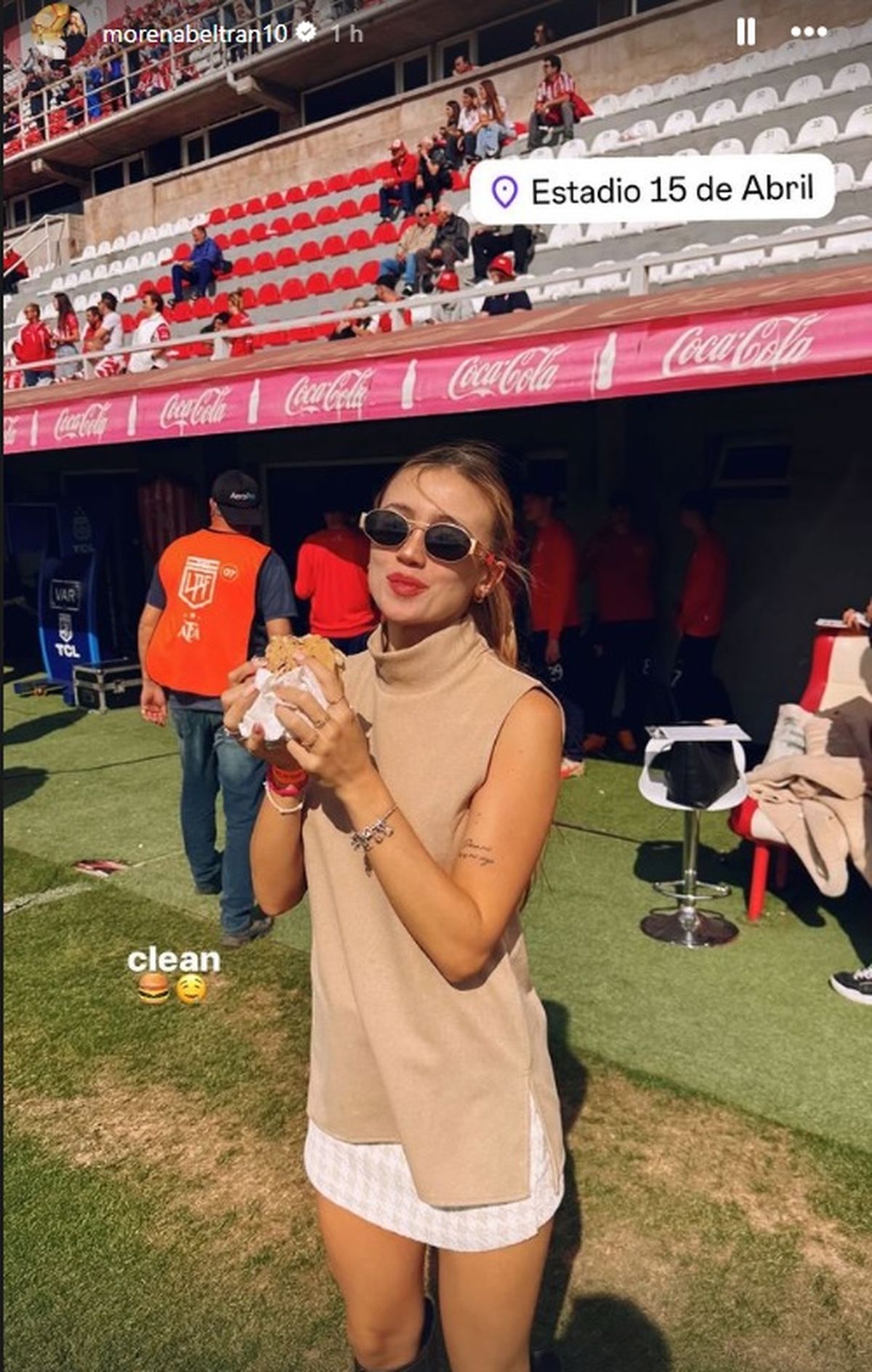 Como en el Mundial de Qatar 2022 y la Copa América 2024, la figura de Morena Beltrán cautivó los ojos de muchos hinchas de Unión que la reconocieron cuando salió al campo de juego del 15 de Abril. La periodista de ESPN compartió en sus redes sociales una serie de fotos donde se la ve en la cancha y algunas fuera del trabajo almorzando una hamburguesa en la previa del partido entre Unión y River.