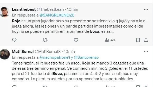 Los comentarios de los hinchas de Boca sobre el partido de Rojo
