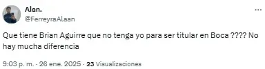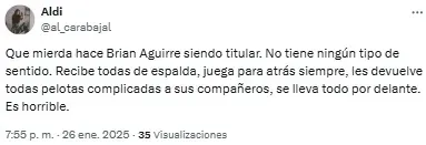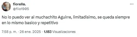 “No lo puedo ver al muchachito Aguirre, limitadísimo. Se queda siempre en lo mismo: básico y repetitivo”, destacó una de las usuarias. “Aguirre es Pavón 2.0”, sintetizó otro de los hinchas.