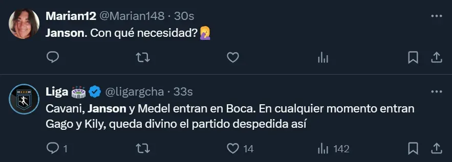 El ingreso de Lucas Janson, que no tuvo una buena actuación, fue de los más criticados. Más allá de que los fanáticos xeneizes cuestionaron su presencia, se mostraron enfurecidos con Gago por no darle rodaje a Brian Aguirre, como así también por colocar a Jabes Saralegui en el lateral derecho tras la lesión de Juan Barinaga.