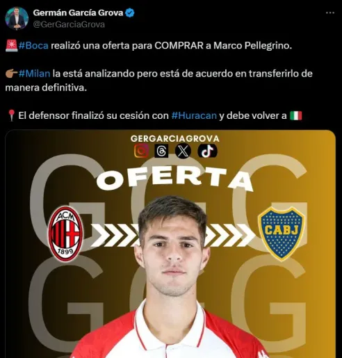La semana pasada, el periodista Martín Arévalo reveló que desde Milan pretenden 5 millones de dólares por su ficha. Será cuestión de esperar para ver si hay acuerdo entre clubes y Boca puede sumar a Pellegrino antes del viaje de este domingo a Miami. Sino podría sumarse más adelante, viajando directamente a Estados Unidos.