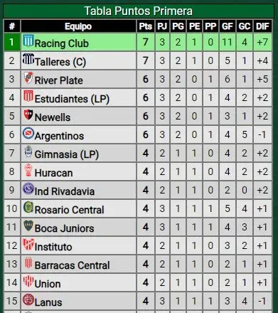 Así quedó la tabla de posiciones en la Liga Profesional