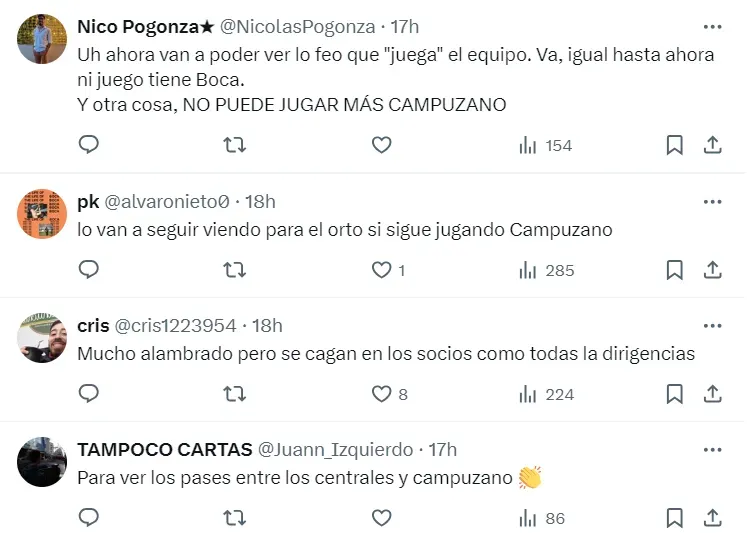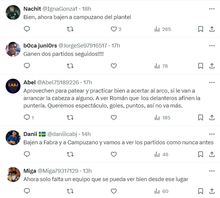 Boca utilizó sus redes sociales para mostrar ambas obras y lo hizo con videos en los que mostraba el proceso. En Twitter los comentarios fueron lapidarios en los dos videos, al hincha pareciera importarle poco estos cambios y focalizaron en lo mal que juega en el equipo, en los resultados y también puntualizaron en algunos jugadores: Jorman Campuzano y Frank Fabra.