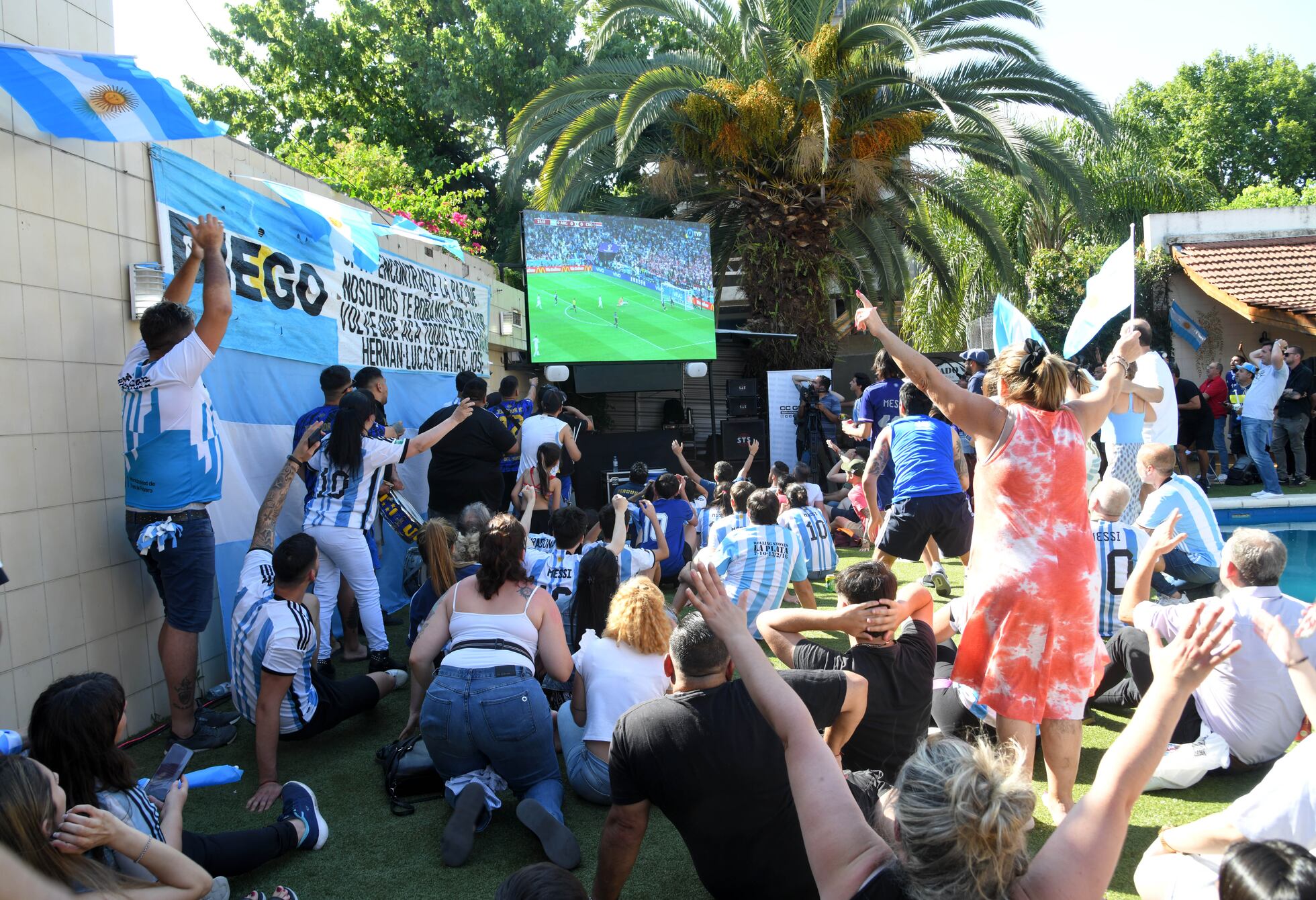 Su pronóstico quedó corto. Argentina terminó ganando a Croacia por 3 a 0 y la fiesta en casa de don Diego y la Tota, los padres de Maradona, comenzó temprano. Un parrillero repartió 150 kilos de carne picada en pan. La banda de percusión de La 12, la barra brava de Boca Juniors, tocó bajo el sol durante todo el partido. No hubo alcohol, y desde el niño más pequeño hasta el más rudo a cargo de los bombos tuvieron que elegir entre agua o gaseosa. Para cuando Julián Álvarez anotó el tercero al arranque del segundo tiempo, unos 10 niños chapoteaban en la piscina, ajenos a la música, las bombas de humo y a las tres pantallas repartidas entre el jardín y el salón principal.