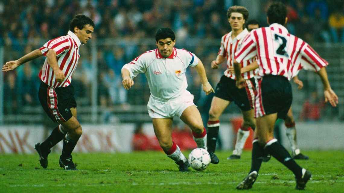 Tras la suspensión por doping y de la mano de Carlos Salvador Bilardo nuevamente, Maradona llegó a Sevilla, en una nueva incursión en el fútbol español. En total jugó 29 partidos y marcó seis goles, aunque su nivel estuvo lejos de lo que venía haciendo en el Nápoli. Esa temporada el equipo terminó séptimo en la Liga, y después de una relación complicada con Bilardo y la dirigencia, decidió volver a la Argentina. Newell’s lo esperaba.