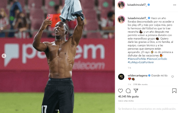 "Hace un año lloraba desconsolado por no acceder a los play off y más por culpa mía, pero lo hermoso del fútbol es que te trae revancha y un año después me permite volver a primera división con este maravilloso grupo. Quiero darle las gracias a Dios, a mi familia, al equipo, cuerpo técnico y a las personas que siempre están apoyando. ¡El Rayo es de primera, a disfrutar de las vacaciones!", exteriorizó.