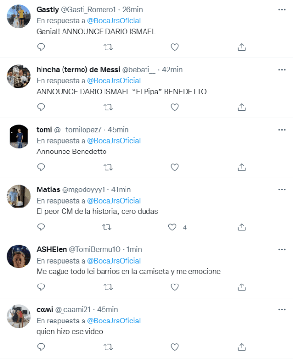 La cuenta oficial de Boca en la red del "pajarito azul" generó la locura de los hinchas al anunciar dos nuevas contrataciones de cara a la próxima temporada. ¿El motivo? Muchos usuarios mostraron su desilusión al ver que las publicaciones no se trataban de Darío Benedetto, sino de incorporaciones para el plantel femenino que recientemente campeonó ante San Lorenzo para despedir el año pasado. Los comentarios fueron casi en su totalidad con mensajes pidiendo al "Pipa"