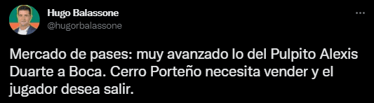 Sin embargo, no sería todo tan óptimo para el club de la Ribera, ya que en sus redes, el jornalista Luis Fregossi agregó que a Duarte lo busca un grupo empresario para depositarlo en el fútbol de Rusia. Su club, Cerro Porteño de Paraguay, necesita vender al futbolista y él no ve con malos ojos dar el salto al exterior de su país.
