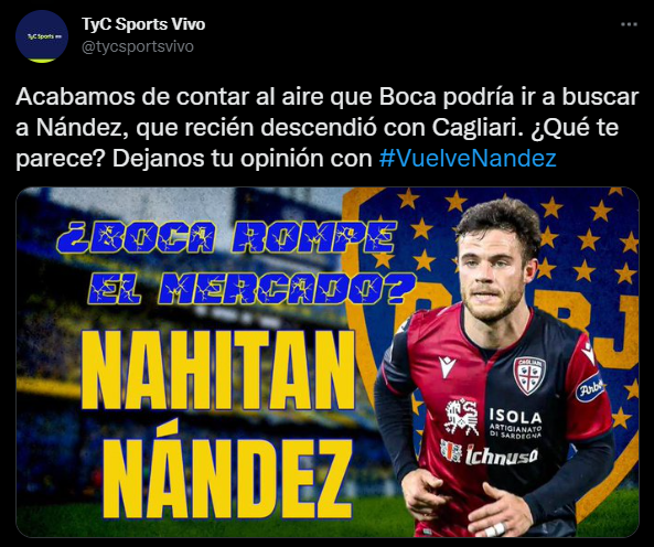 Según contaron, el jugador quiere regresar al club y el contexto en Europa lo ayudaría, ya que el Cagliari que él representa como futbolista descendió a la Serie B de Italia y deberá largar jugadores. ¿Se dará el regreso de Nández a Boca?