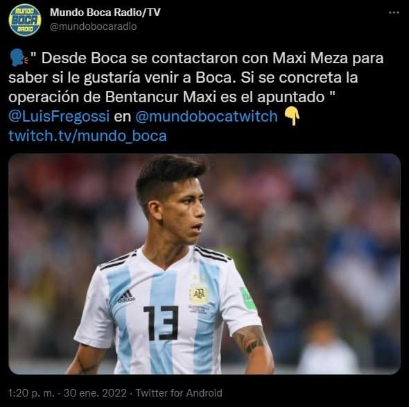 ¿Qué hará Boca con ese dinero? En el programa partidario "Mundo Boca Radio", el periodista Luis Fregossi señaló que hay un apuntado: "Desde Boca se contactaron con Maximiliano Meza para saber si le gustaría venir a Boca. Si se concreta la operación de Bentancur, Maxi es el apuntado".