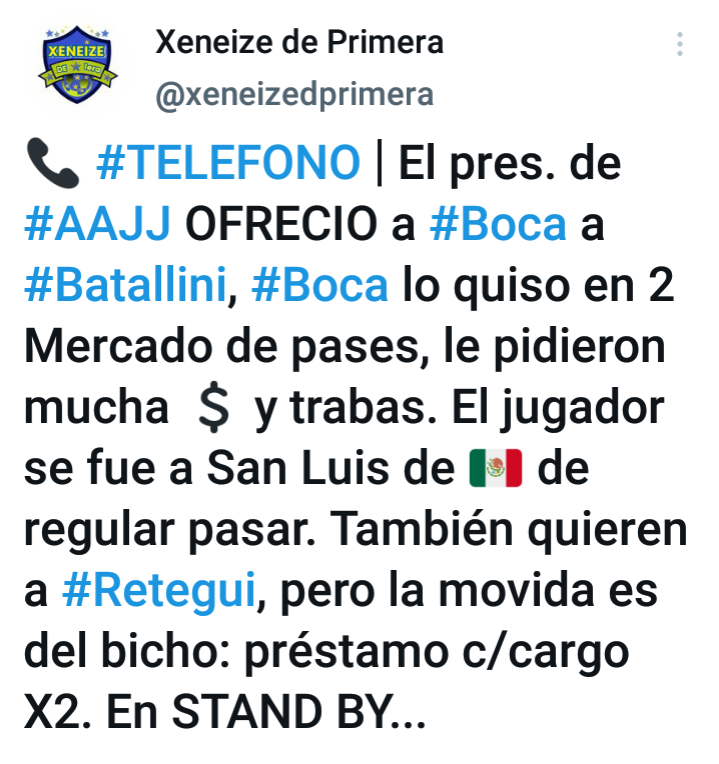 Ese es Damián Batallini, quien actualmente milita en Argentinos Juniors. El presidente del conjunto de La Paternal Cristian Malaspina se comunicó con Boca para ofrecerle al jugador. Como dato extra, el Xeneize ya intentó sumar al delantero en el pasado, pero en vista a ciertas diferencias económicas su llegada al club nunca pudo concretarse.