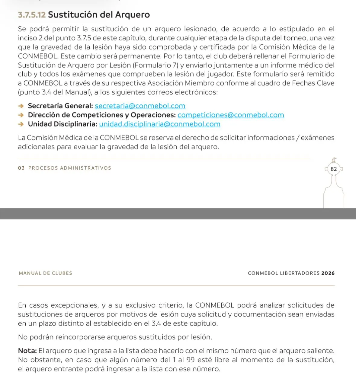 La norma de la CONMEBOL sobre la sustitución de un arquero. (CAPTURA)