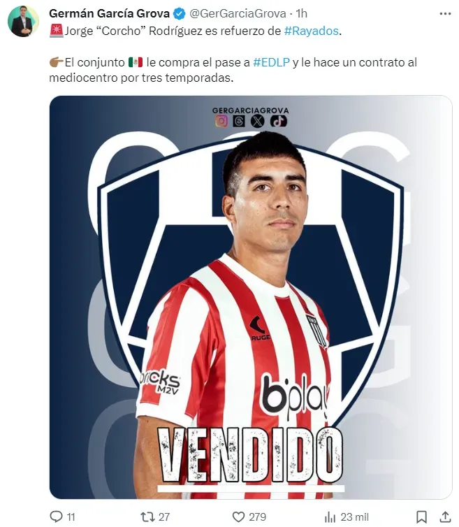 Se trata de Jorge “Corcho” Rodríguez, el 5 de Estudiantes que el Xeneize empezó a sondear en noviembre. Según informó el periodista Germán García Grova, el mediocampista campeón de la Copa Argentina con el Pincha llegó a un acuerdo con Rayados de Monterrey.