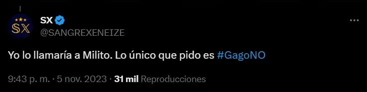 Por intermedio de las redes sociales, los hinchas de Boca comenzaron a pronunciarse con respecto al reemplazante de Jorge Almirón. Y lo cierto es que muchos de los fanáticos Xeneizes se inclinaron por la figura de Gabriel Milito, alguien que diagramó un interesante trabajo en Argentinos Juniors y que ahora se encuentra libre.